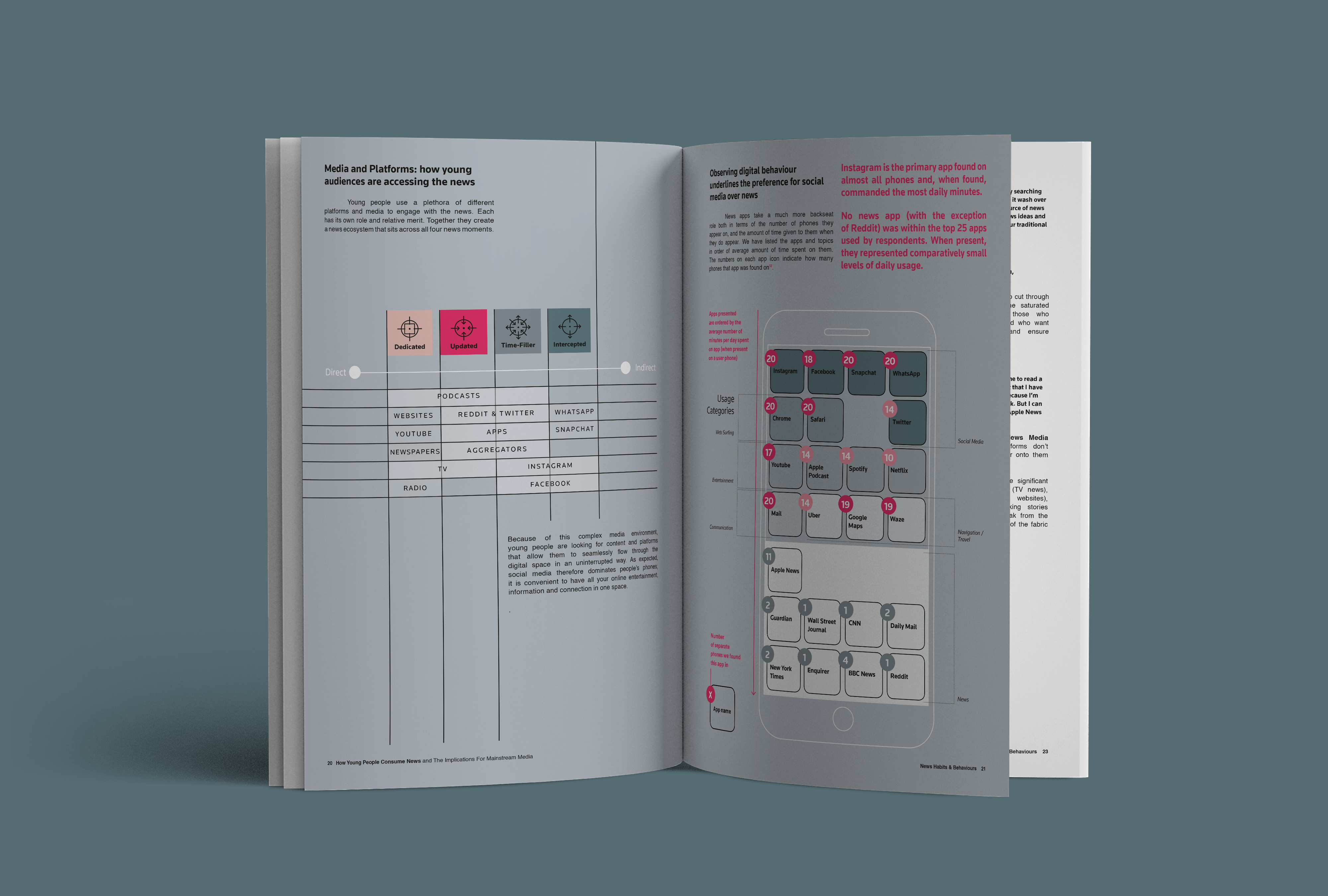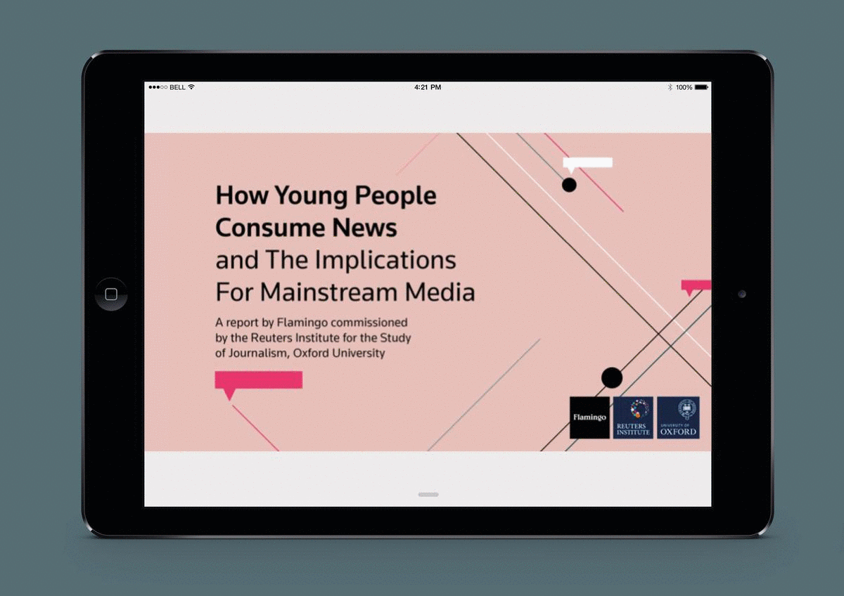 Brief: Alongside their yearly Digital News Report, Reuters commissioned Flamingo to explore how and why younger age groups consume news. The report’s identity and design needed to represent both brands and work across multiple platforms including print, onscreen and event collateral.